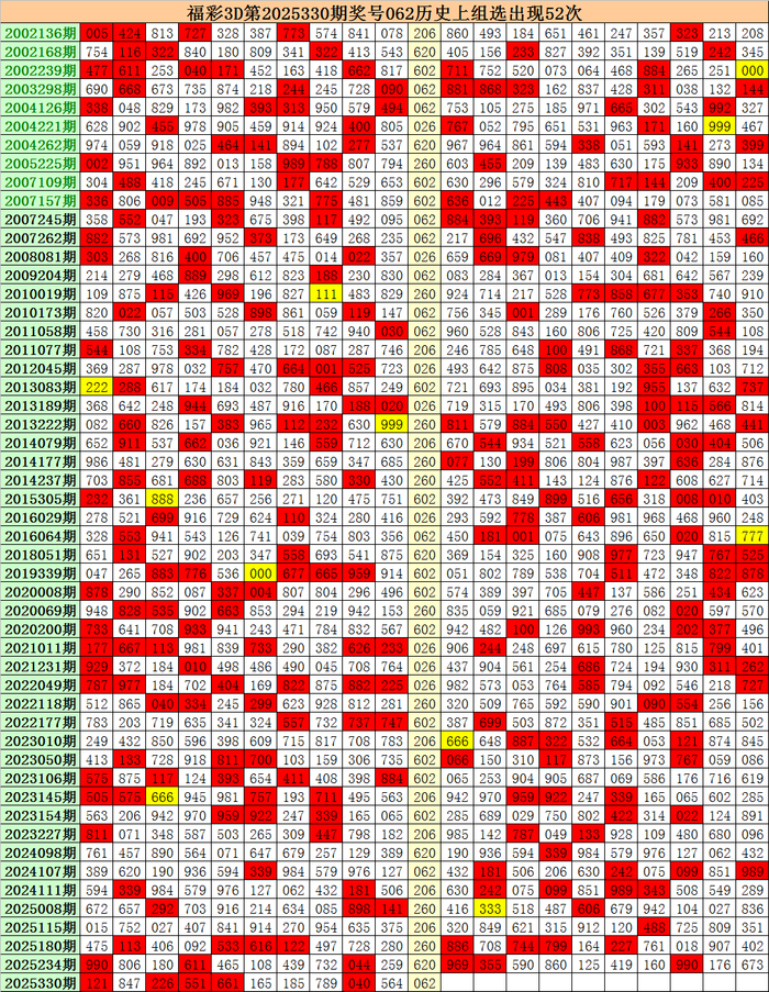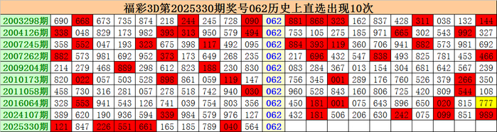 上期转头:福彩3D第2025330期开出奖号062。